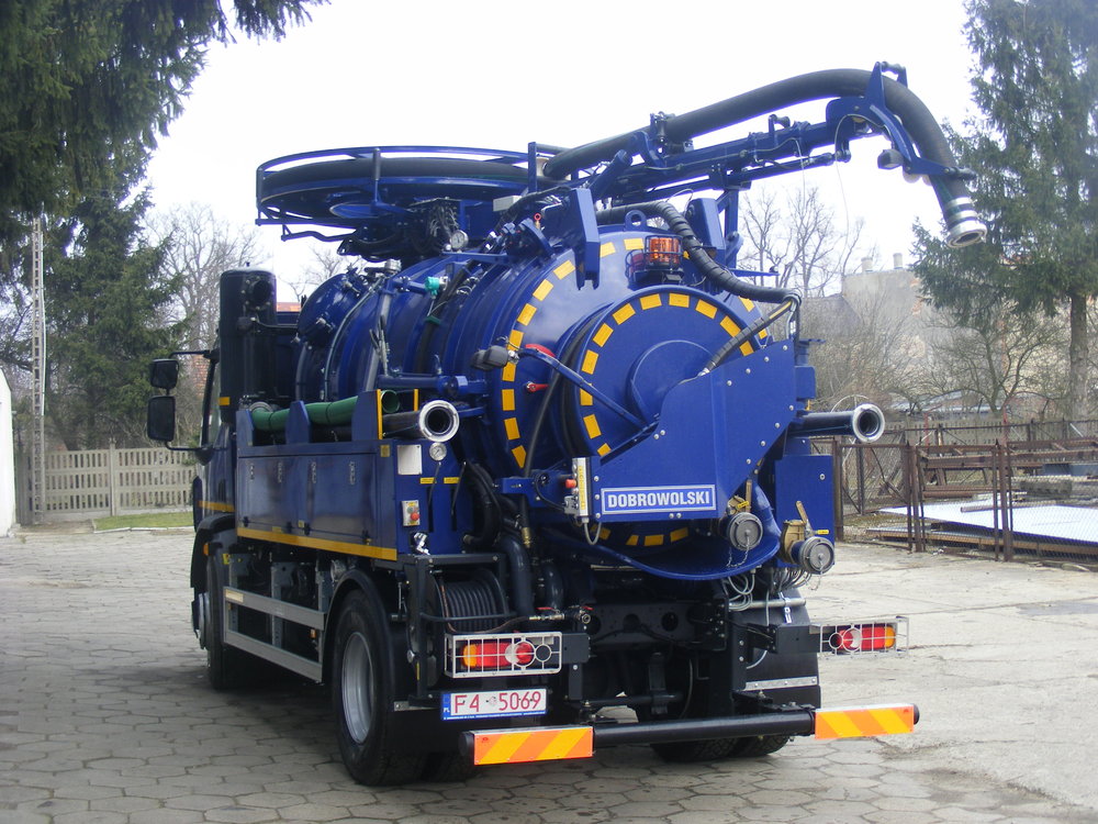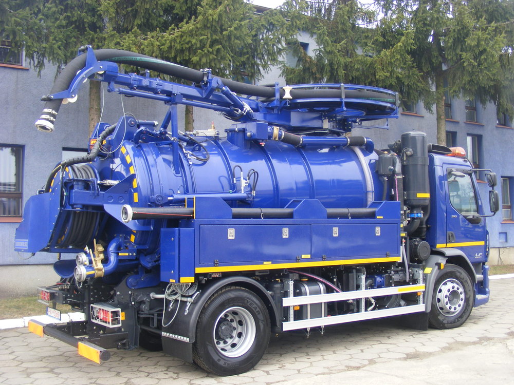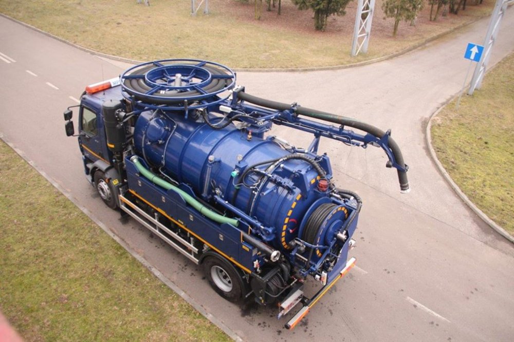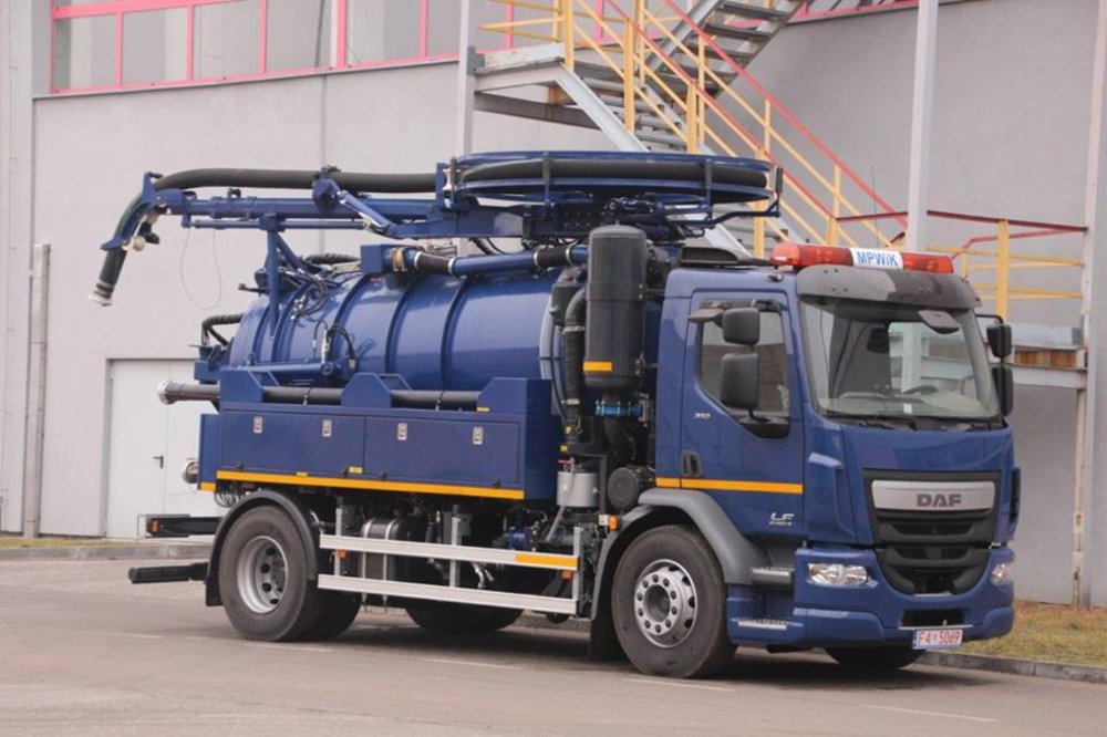 В производственном процессе наше предприятие применяет самые современные технологические решения. Ярчайшим примером является изготовление по заказу клиента двуфункционального илососного автомобиля тип SSC7,5 с двухкамерным резервуаром. Передняя камера для чистой воды емкостью 1,5 m3 и задняя камера для жидких, полужидких загрязнений и осадков емкостью 6 m3. Компрессор (вакуумный насос) – Hibon VTB 820 XL мощностью 2823 м3/ч. Водяной насос – HPP GLR 212/150 мощностью 212 дм3/мин. Двуфункциональный илососный автомобиль тип SSC7,5 смонтирован на шасси марки DAF LF 314.