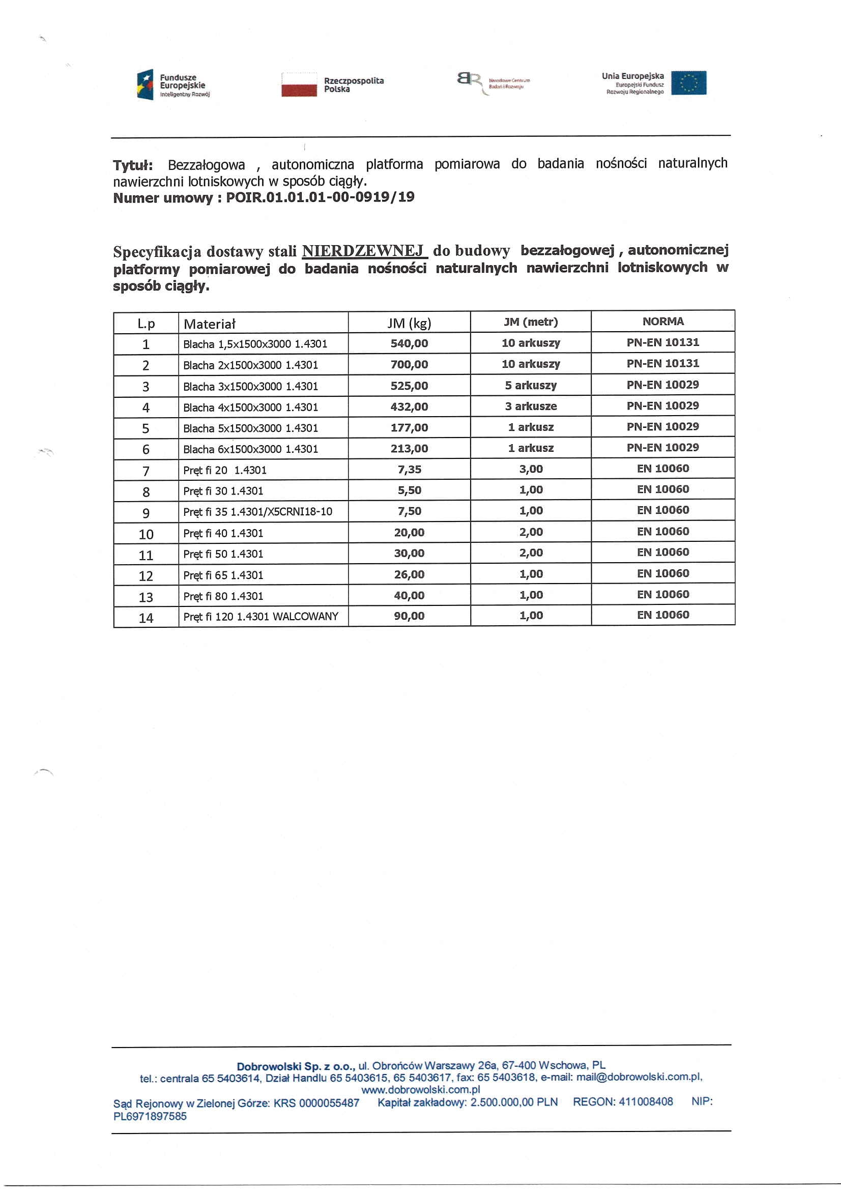 Przedmiotem zamówienia jest dostawa stali do budowy bezzałogowej, autonomicznej platformy pomiarowej do badania nośności naturalnych nawierzchni lotniskowych w sposób ciągły.